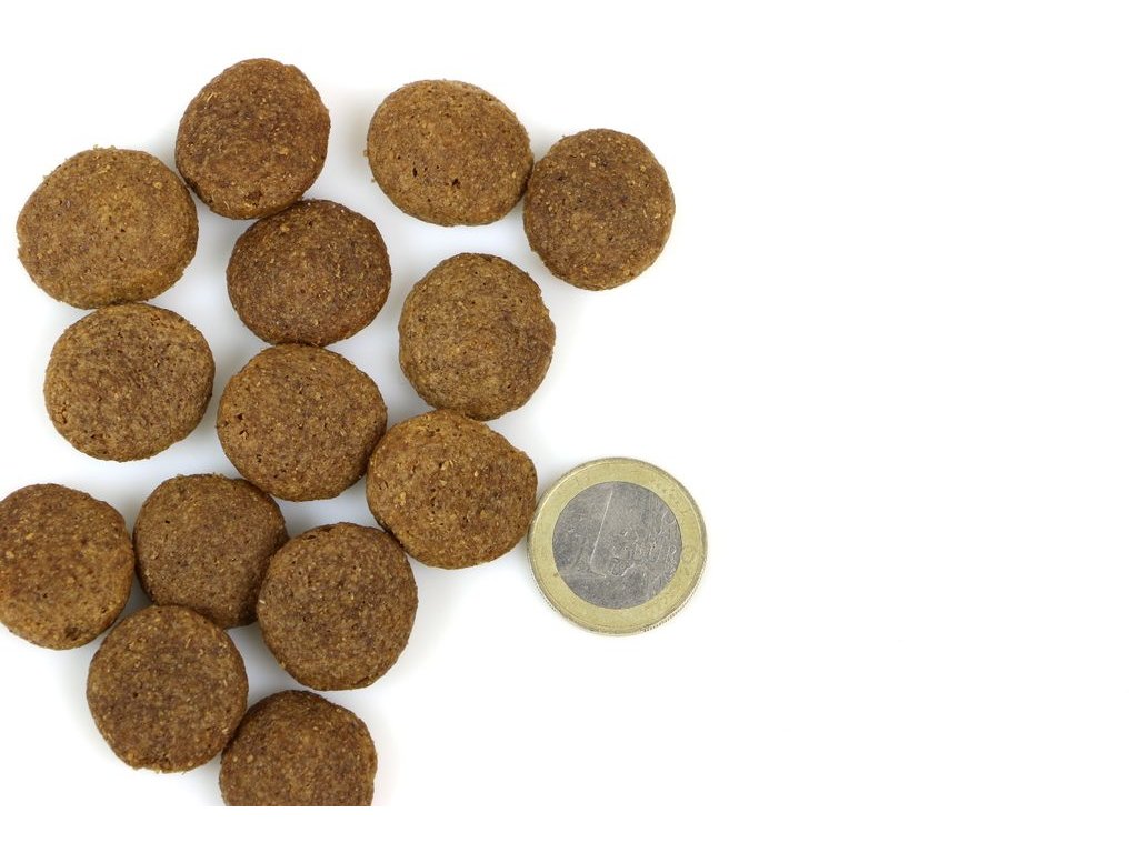 Hmotnost krmné dávky uvedená na obalu krmiva je orientační. Individuálně závisí na plemeni, věku, aktivitě, temperamentu, zátěži, genetických faktorech. Nepřekrmte svého psa v důsledku toho, že se necháte ovlivnit jeho chutí k jídlu a dychtivostí po granulích. Překrmení je nejčastější příčinou poruchy trávení. Denní krmnou dávku rozdělte štěňatům podle věku na 5-3 porce, dospělým jedincům na porce dvě. Krmivo můžete zkrmovat suché nebo navlhčené, navlhčené nenechávejte v misce déle než půl hodiny. Pes musí mít dostatek pitné vody. Na krmivo přecházejte postupně. Přechodu na nové krmivo věnujte několik dní, kdy budete míchat nové se stávajícím. Skladujte v suchu a chladu. Po otevření spotřebujte do 3 měsíců.