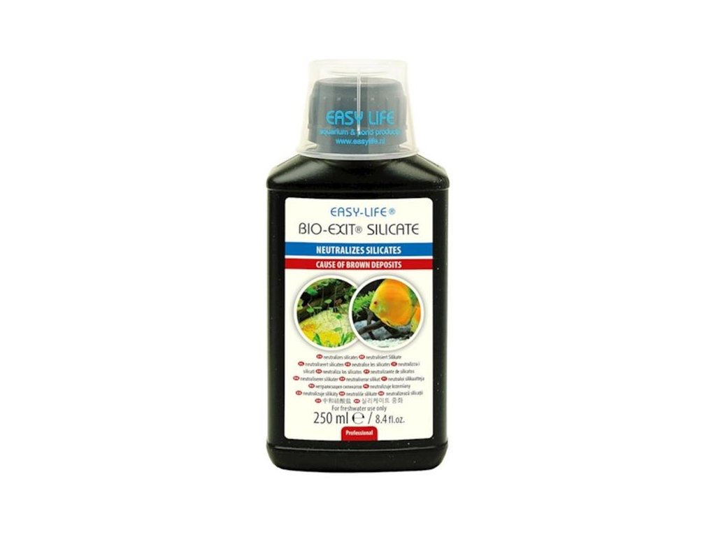 Přípravek Bio-Exit Silicate zabraňuje tvorbě hnědých usazenin na akvarijních rostlinách, dekoracích a substrátu. Také kvůli novým klimatickým podmínkám se do sladkovodních akvárií stále častěji přímo prostřednictvím vody z kohoutku (podzemní vody) dostávají křemičitany, které podporují růst zejména rozsivek. Tyto řasy jsou sice neškodné, ale nevzhledné. Pokrývají substrát, rostliny, vybavení i dekorativní předměty hnědými nánosy.