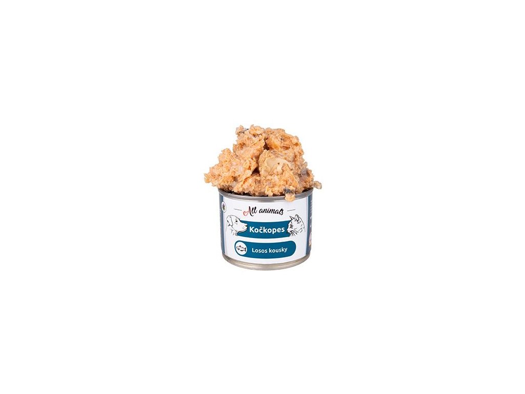 Luxusní 100% masová konzerva pro psy a kočky, s příchutí kousky lososa.