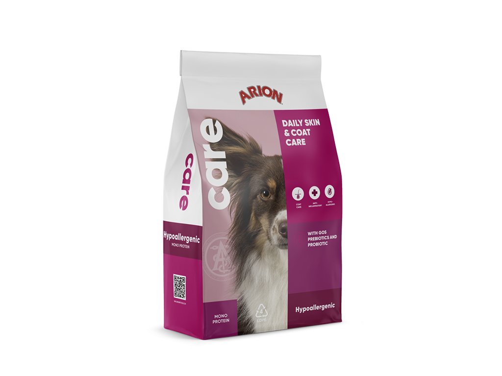 Kompletní krmivo pro psy. Arion Care Hypoallergenic bylo speciálně vyvinuto pro zlepšení a udržení kondice kůže a srsti pro psy s citlivou kůží. Toto krmivo obsahuje vysoce stravitelné ingredience s nízkým obsahem alergenů.Složení