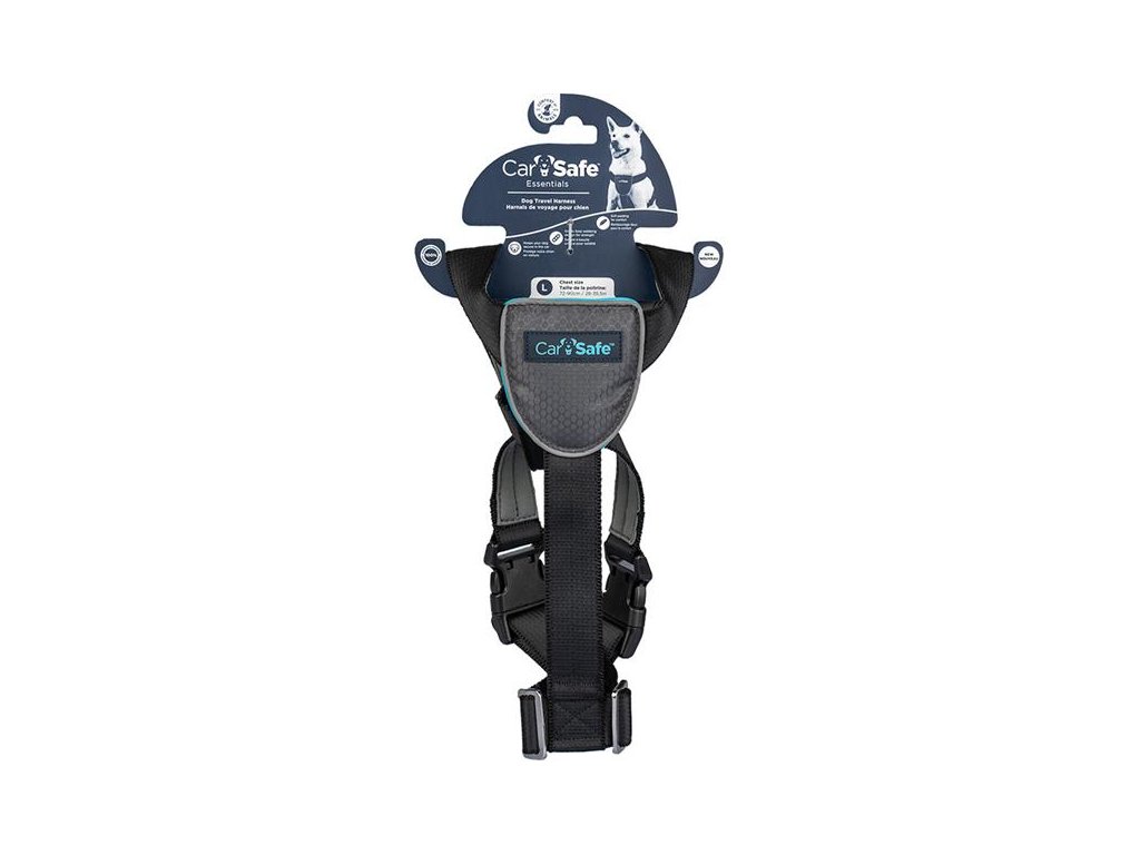 CarSafe Harness od společnosti Company of Animals je ultrapevný a lehký postroj pro psy s dvojí funkcí – lze jej použít spolu s bezpečnostním pásem jako přepravní zádržný systém v autě i jako postroj k venčení psa. Je nejen bezpečný, ale také velmi pohodlný. Je vyrobený z kvalitního, pevného, a přesto lehkého materiálu s polstrovanými krčními popruhy i hrudním dílem, který je navíc kvůli lepší viditelnosti psa olemován reflexním proužkem. Postroj je v horní části vybaven prostorným D-kroužkem, kterým lze protáhnout autopás a připoutat psa k zadnímu sedadlu nebo k němu připnout vodítko v případě, kdy pes potřebuje opustit vozidlo. Díky přezkám na bocích postroj snadno a rychle nasadíte i svléknete, aniž by zvíře muselo zvedat tlapky, a pomocí plastových průvleků nastavíte potřebnou délku popruhu.