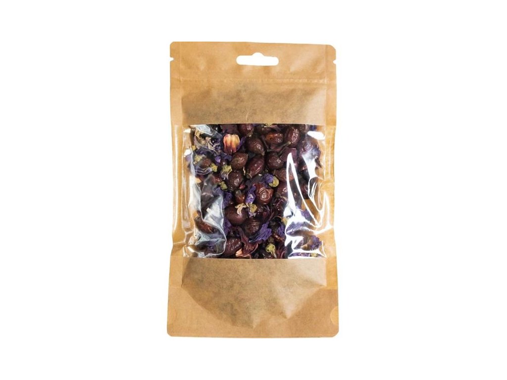 šípek plod 30 %, ibišek květ 30 %, aronie (jeřáb černý) plod 30 %, sléz maurský květ 10 %.
