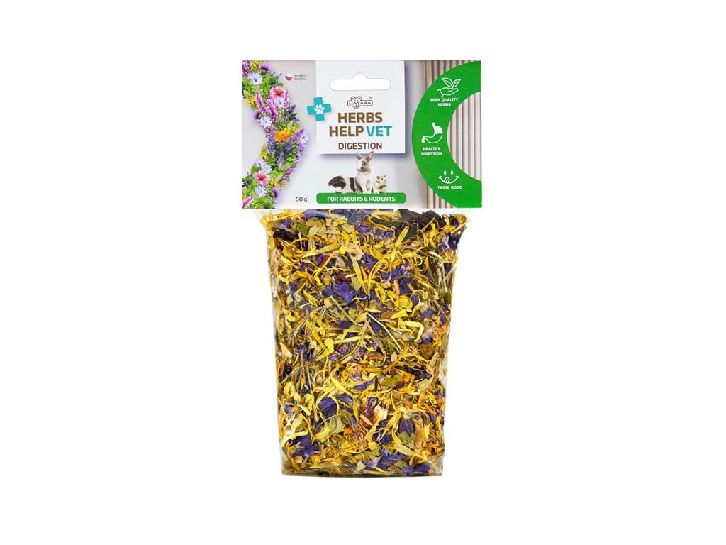 Čistě přírodní směs je tvořená výhradně bylinami, které mají pozitivní vliv na trávení a podporují správné zažívání u králíků a dalších drobných savců. Ideální jako doplněk stravy nebo zdravý pamlsek.
