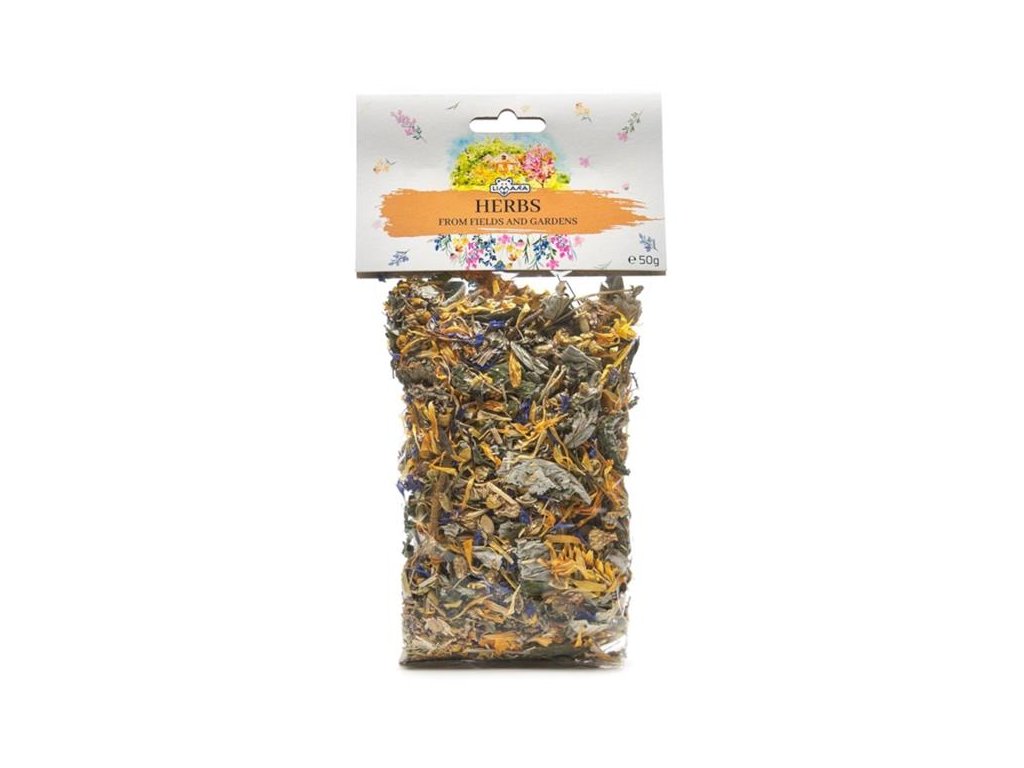 Bylinná směs pro králíky a drobné hlodavce obsahující bylinky z prostředí polí a zahrad, které jsou přirozenou součástí jídelníčku volně žijících druhů. Podporuje přirozenou obranyschopnost organismu a svojí strukturou pomáhá zvířatům přirozeně obrušovat zuby a též napomáhá lepšímu trávení a peristaltice střev.
