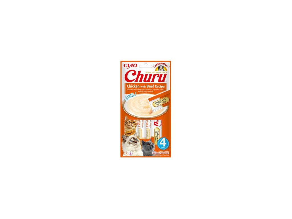Churu masové pyré pro kočky s kuřecím z farmy a hovězím masem. Lahodný, přírodní pamlsek krémové konzistence bez obilovin. Zdravé mlsání s nízkým obsahem kalorií, bez konzervantů, chemických aromat, bez barviv a umělých dochucovadel. Masové pyré můžete také podávat stejně jako jinou kočičí kapsičku přímo z misky nebo ho můžete přidat ke granulím pro vylepšení jejich chuti.