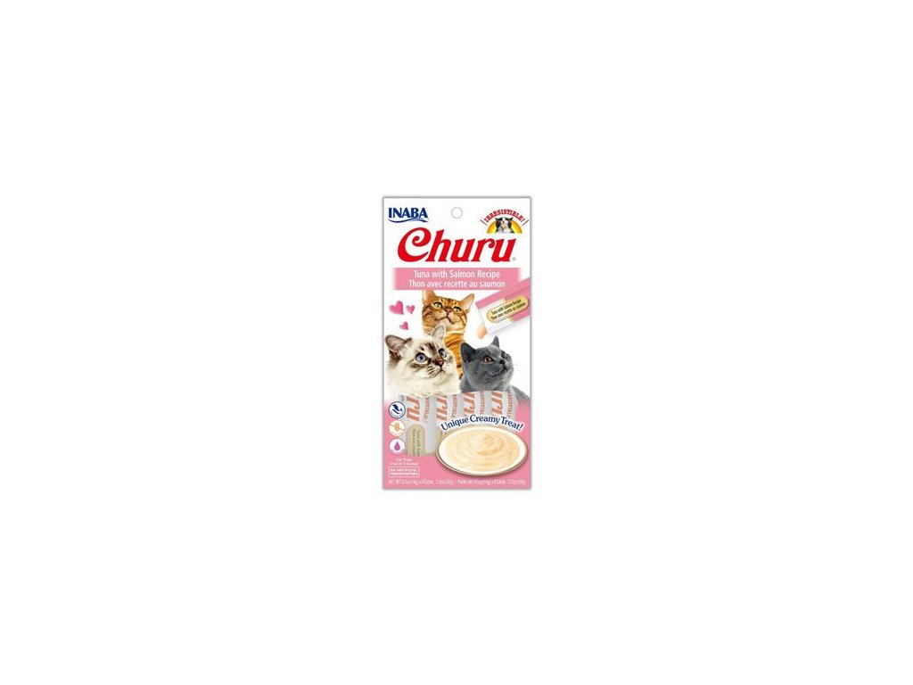 Churu masové pyré pro kočky s tuňákem a lososem. Lahodný, přírodní pamlsek krémové konzistence bez obilovin. Zdravé mlsání s nízkým obsahem kalorií, bez konzervantů, chemických aromat, bez barviv a umělých dochucovadel.
