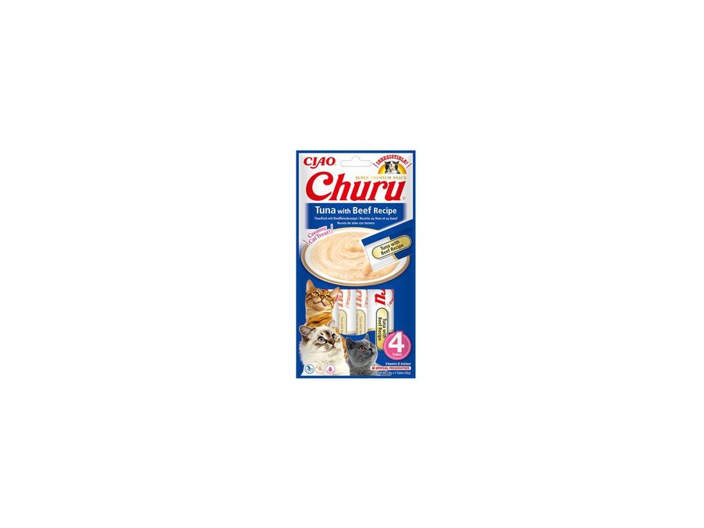 Churu masové pyré pro kočky s tuňákem a hovězím masem. Lahodný, přírodní pamlsek krémové konzistence bez obilovin. Zdravé mlsání s nízkým obsahem kalorií, bez konzervantů, chemických aromat, bez barviv a umělých dochucovadel. Masové pyré můžete také podávat stejně jako jinou kočičí kapsičku přímo z misky nebo ho můžete přidat ke granulím pro vylepšení jejich chuti.