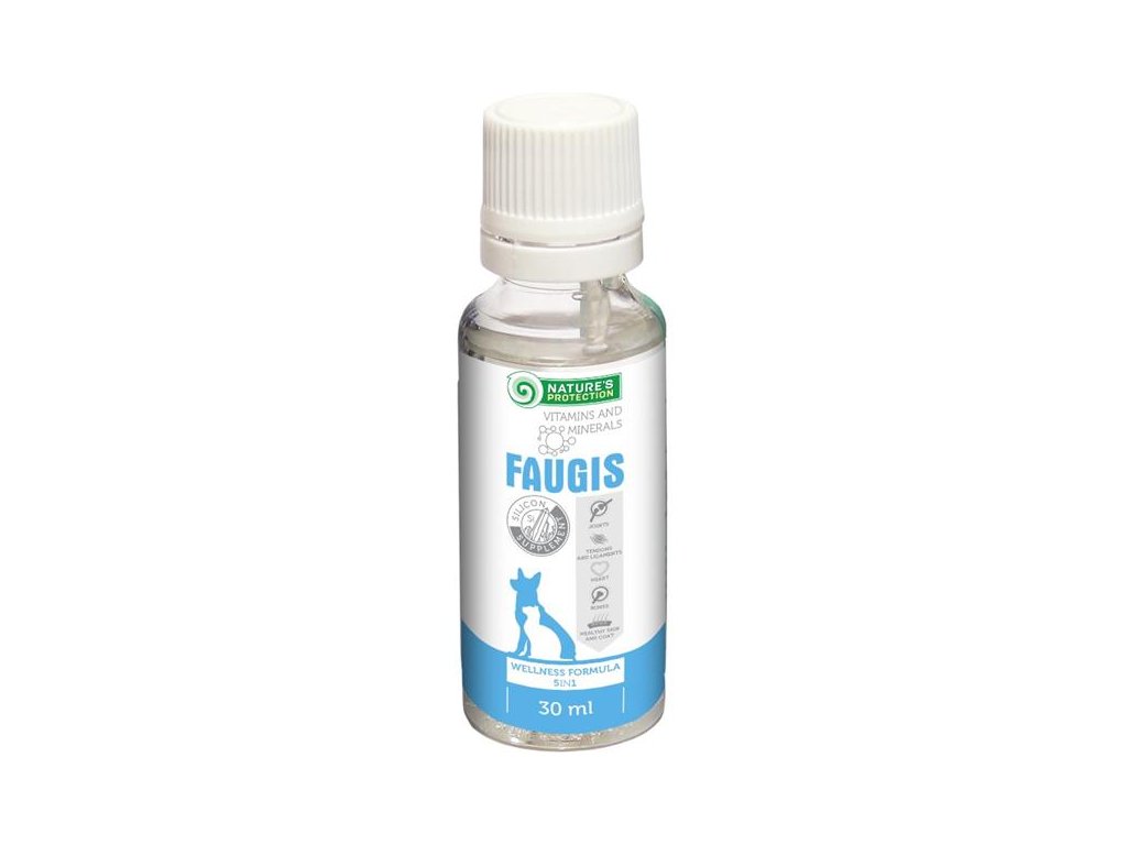 Nature’s Protection Fauglis Wellness Formula 5in1 je doplněk stravy s unikátní regenerační formulí 5 v 1, navržený pro komplexní podporu zdraví dospělých psů a koček. Obsahuje křemík a propylenglykol. Křemík je důležitý prvek pro zdraví pojivových tkání, srsti, kostí i srdce. Propylenglykol usnadňuje vstřebávání účinných látek přímo do buněk.