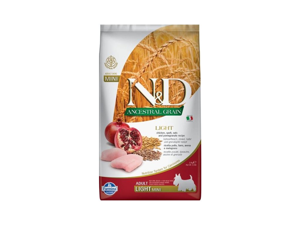 N&D ANCESTRAL GRAIN Dog LG Light-Chicken, Spelt, Oats & Pomegranate Adult Mini 2,5 kg