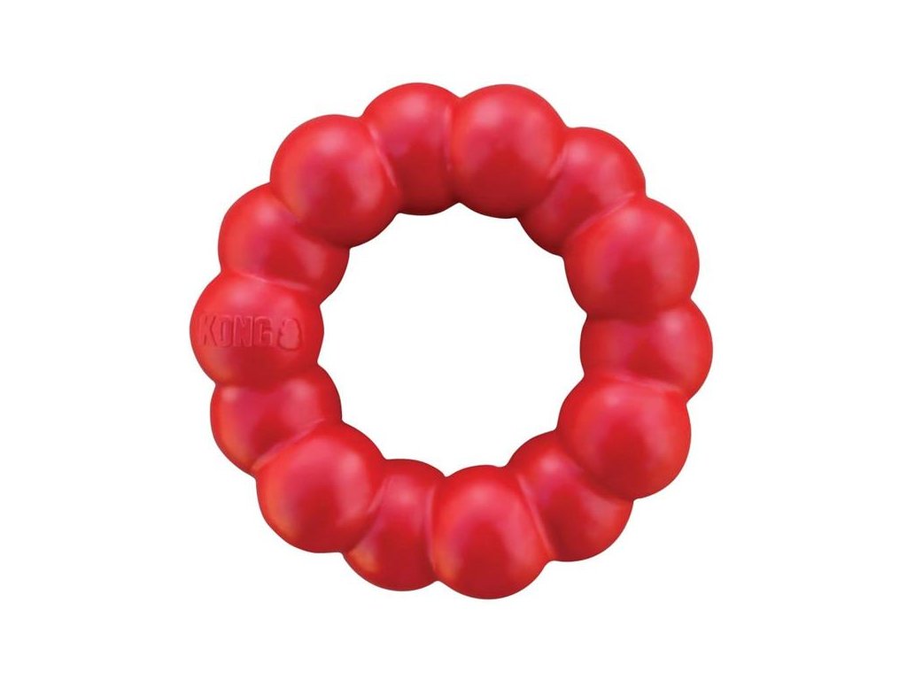 Gumová hračka KONG Kruh pro psy ze speciální, odolné gumy. Je vyrobena z ultra elastického, čistě přírodního kaučuku, který je velmi pružný a zároveň velmi odolný a pevný i pro největší ničitele hraček. Hračka má atraktivní tvar i povrch. Masážní výstupky psi milují, pomáhají jim čistit zuby, masírovat dásně a posilovat žvýkací svalstvo. Nerovný povrch je mnohem zábavnější než povrch hladký. KONG k výrobě hraček používá přírodní gumu, která je šetrná k zubům, odolná a netoxická.