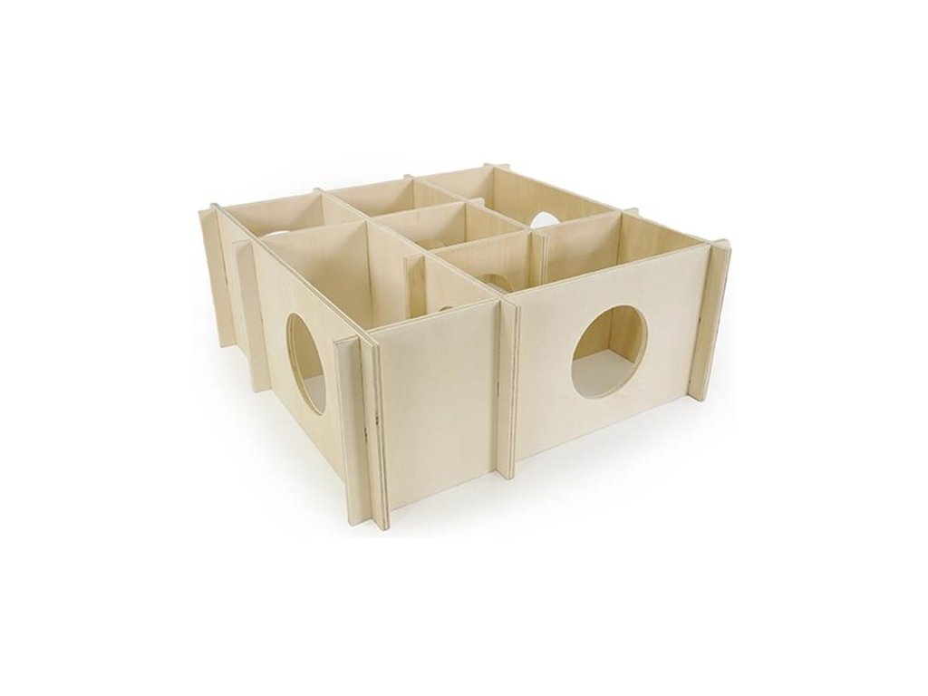 Zábavné bludiště pro všechny křečky, myši a pískomily se skládá ze 7 panelů a lze jej rozložit pro snadnější skladování. Překližka je neošetřená a bezpečná v případě ohlodání. Pro ještě větší zábavu můžete spoji dvě nebo více bludišť dohromady. Tato hračka je skvělá na zahnání nudy v klecích a výbězích.