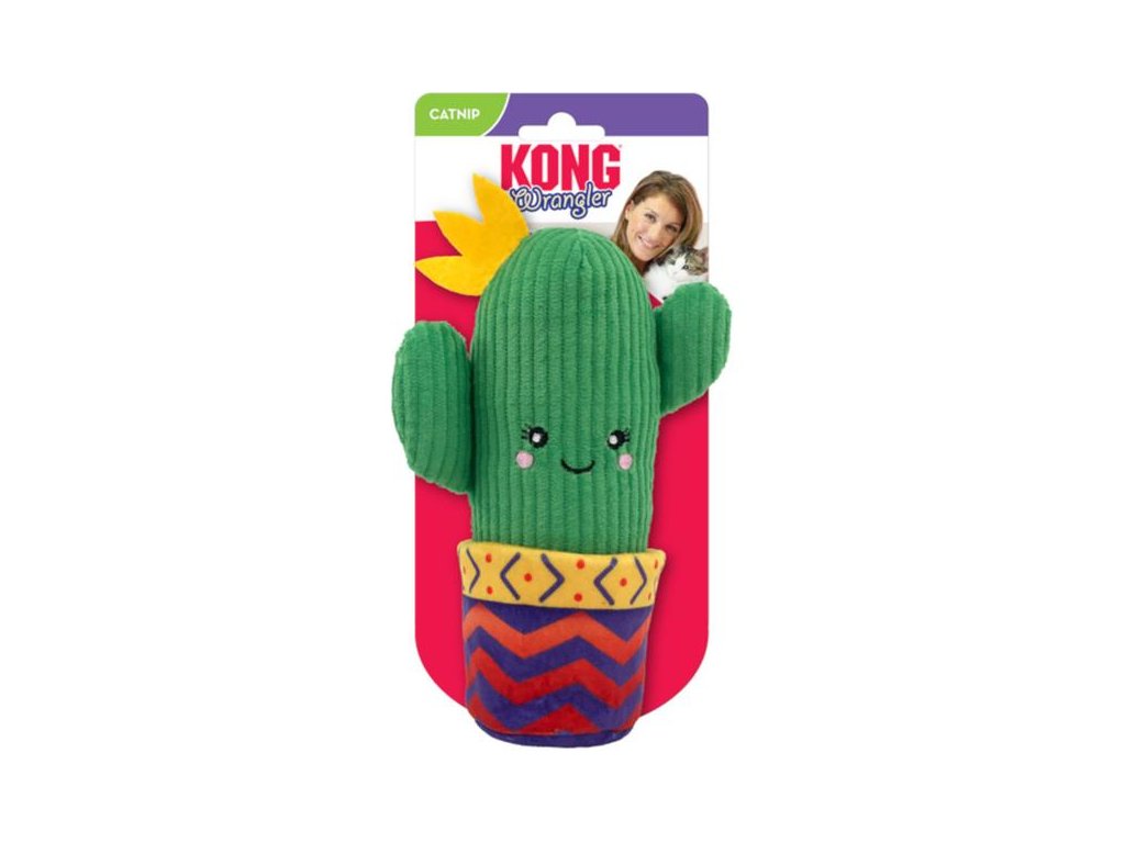 KONG Cat Wrangler zábavný a měkký kaktus v pestrobarevném šustivém květináči probudí ve vaší kočce přirozené lovecké instinkty, zažene nudu a přispěje k udržení dobré fyzické i psychické kondice. Kvůli většímu dobrodružství i jako prevence ztráty jednotlivých částí hračky je kaktus na pevno spojen s květináčem delším proužkem látky. Dlouhá a masivní konstrukce i možnost vysunout kaktus z květináče vybízí kočku k zápasu celým tělem i ke kopání zadními tlapkami. Pro větší vzrušení i radost ze hry vydává květináč šustivé zvuky a hračka je naplněna magickou šantou kočičí (catnipem), přírodní nenávykovou bylinou, která povzbuzuje ke hře až 70 % koček. Do květináče lze také ukrýt drobné pamlsky nebo hračky a motivovat tím vaše kočky k další hře.