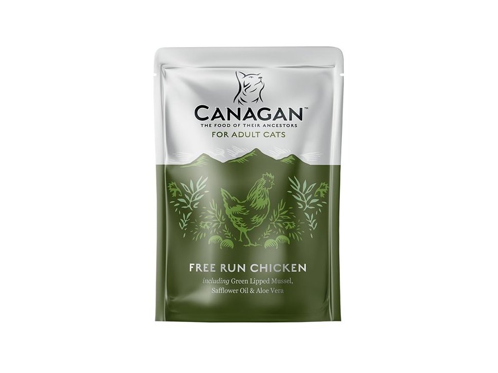 Canagan Free-Run Chicken - je kompletní krmivo pro dospělé kočky z kuřecího masa z volného chovu v receptuře bez obilovin. Nejlepší kousky masa (v každé kapsičce je až 80 % živočišných surovin) pro zdraví a skvělou chuť krmiva. Zelená škeble navíc představuje přirozený zdroj glukosaminu a pomáhá pečovat o zdravé klouby vaší kočky.