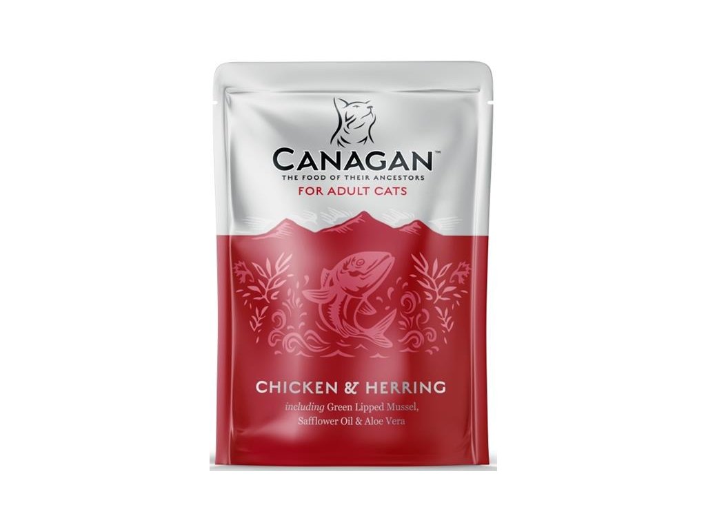 Canagan Chicken & Herring - je kompletní krmivo pro dospělé kočky z kuřecího masa a sleďů v receptuře bez obilovin. Nejlepší kousky masa (v každé kapsičce je až 80 % živočišných surovin) pro zdraví a skvělou chuť krmiva. Zelená škeble navíc představuje přirozený zdroj glukosaminu a pomáhá pečovat o zdravé klouby vaší kočky.