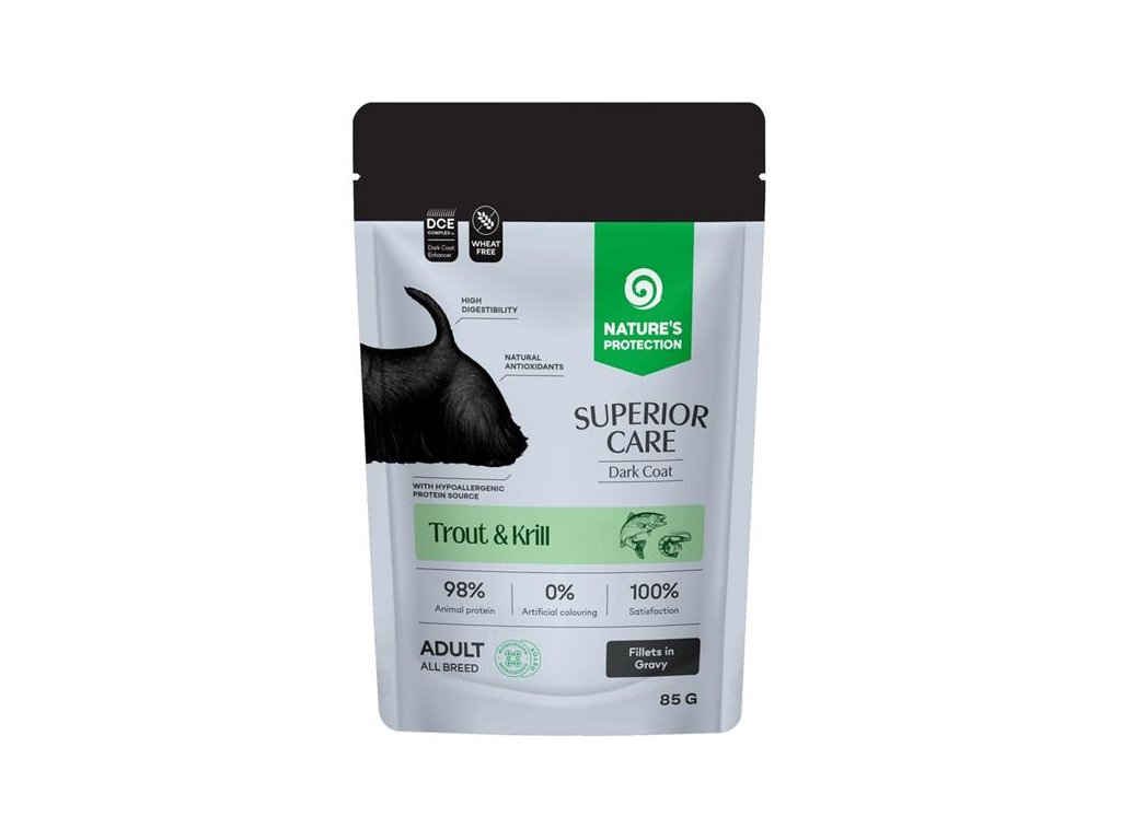 Nature's Protection Superior Care Dog kaps. Adult Dark Coat Trout/Krill 85 g