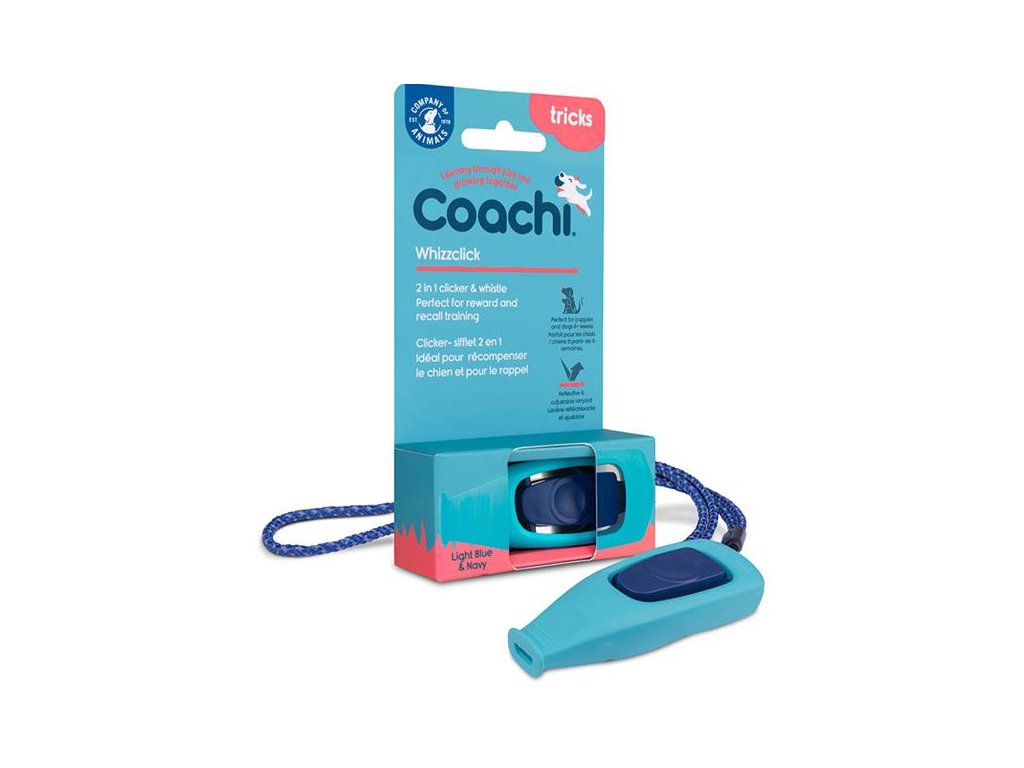 Coachi Whizzclick je multifunkční 2 v 1 výcviková pomůcka pro psy, která v sobě spojuje clicker a píšťalku. Clicker usnadňuje učení pozitivním posilováním: dává psovi jasný signál, že splnil úkol a že jej za to čeká odměna. Píšťalka vydává silný a čistý tón dobře slyšitelný na dálku. Whizzclick je opatřený reflexním provázkem s nastavitelnou délkou, který lze utáhnout kolem zápěstí.