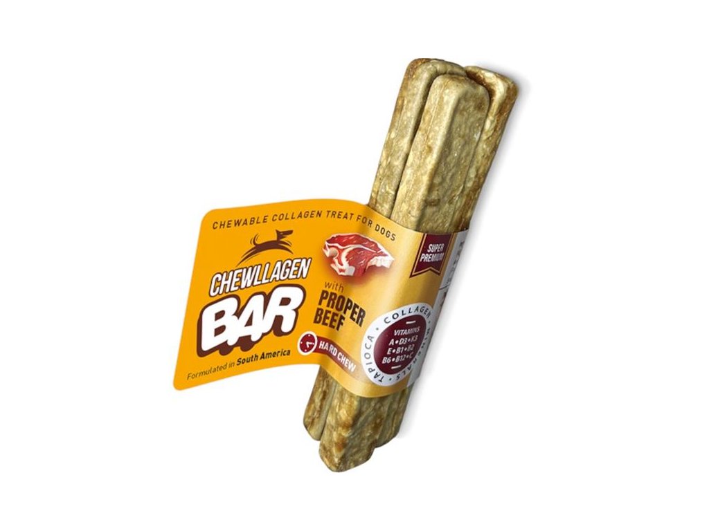 Odolná žvýkací tyčinka Chewllagen BAR Beef je speciálně navržená pro podporu zdraví kloubů, mobility a celkové pohody psů. Obsahuje vysoce kvalitní hydrolyzovaný kolagen, který hraje klíčovou roli při udržování zdraví pojivových tkání – tedy kloubů, kůže a šlach. Bezobilná (grain-free), bezlepková tyčinka je navíc obohacená o důležité vitamíny (A, C, E, D3, K3, B1, B2, B6 a B12) a minerály, neobsahuje žádný přidaný cukr ani GMO a má nízký obsah tuku, což z ní činí ideální pochoutku i pro psy se sklonem k nadváze.