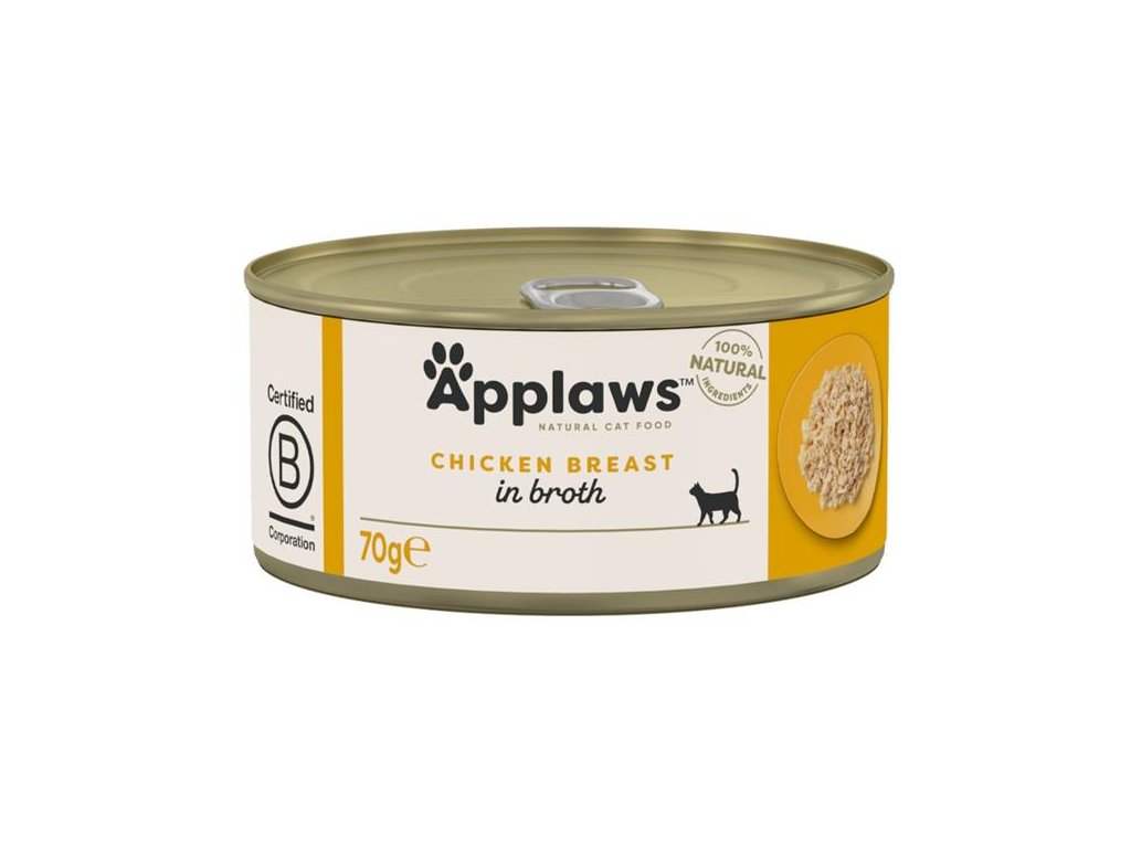 Konzerva Applaws je lehce stravitelné, nutričně vysoce hodnotné, přirozeně bezlepkové, hypoalergenní a hlavně velmi chutné krmení! 100% přírodní krmivo bez umělých konzervačních látek, barviv nebo dochucovadel. Kvalitu poznáte na první pohled po otevření konzervy: přirozená konzistence trhaného masa z kuřecích prsou v lahodném kuřecím vývaru vás přesvědčí a vaši kočku nadchne. Maso pochází z kuřat, která jsou chována ve volných výbězích, krmena přirozeně bez použití hormonů a antibiotik, jsou zdravá a v potravinářské kvalitě.