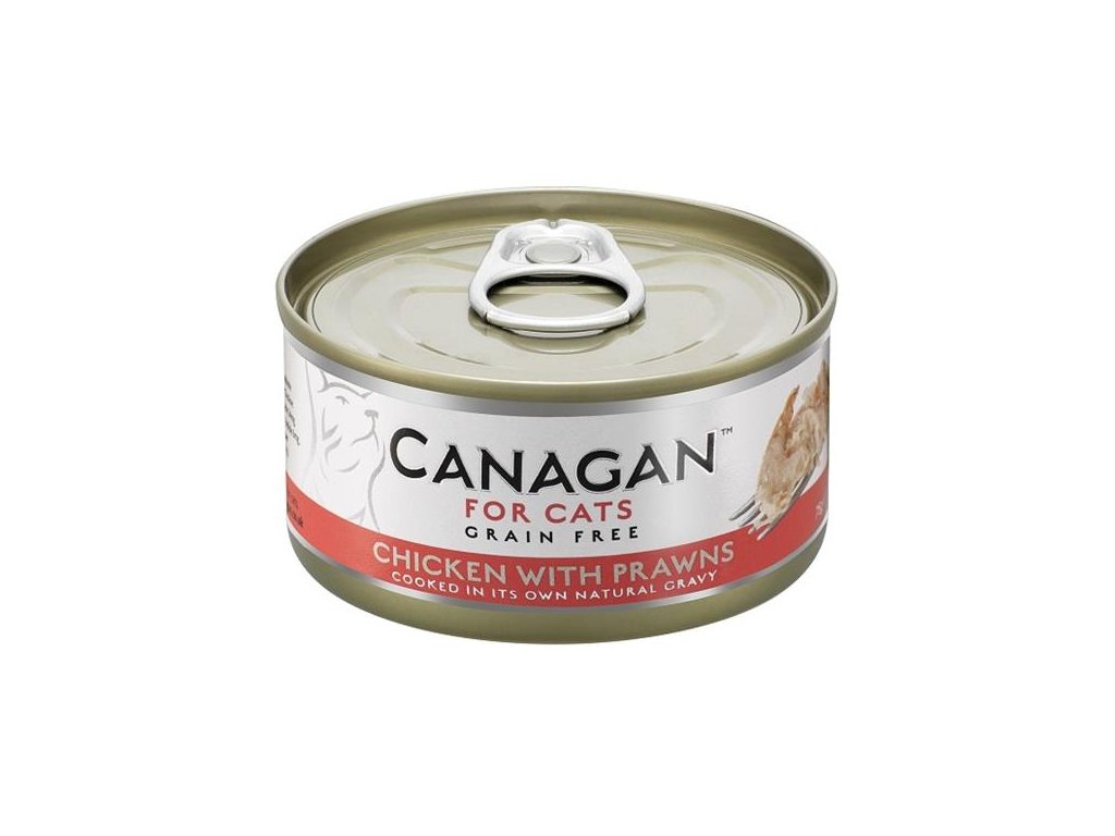 Canagan Cat Chicken with Prawns – je kompletní krmivo pro kočky. Vyrobené je z čerstvého kuřecího masa bez kůže. Kuře doplňují lahodné celé krevetky – dohromady šetrně vařené ve vlastní šťávě pro zachování vysoké výživové hodnoty krmiva.