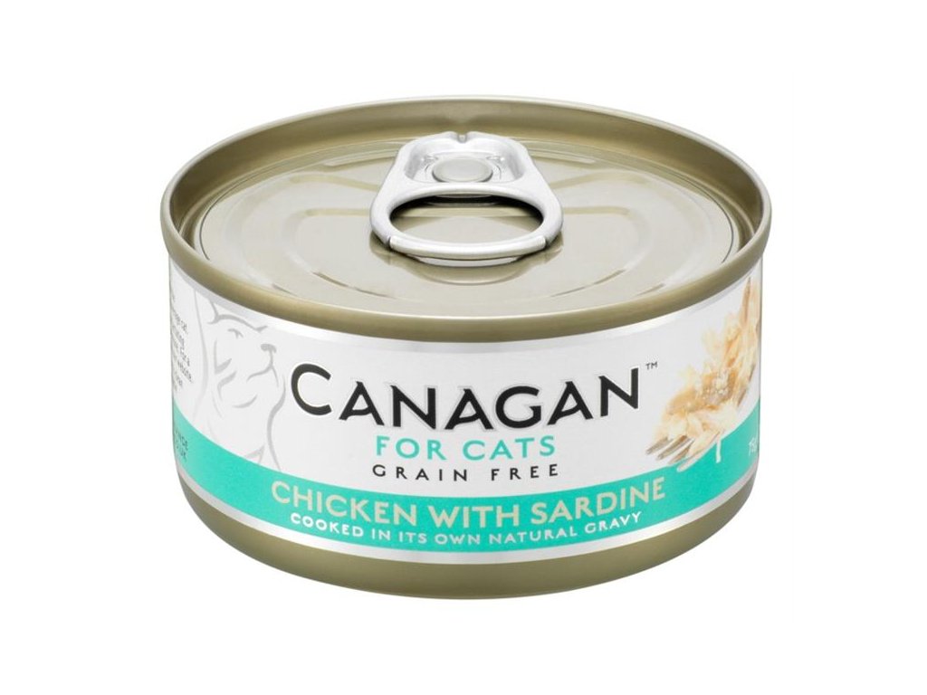 Canagan Cat Chicken with Sardine – je kompletní krmivo pro kočky. Vyrobené je z čerstvého kuřecího masa bez kůže. Kuře doplňují lahodná sousta sardinek – vše šetrně vařené ve vlastní šťávě pro zachování vysoké výživové hodnoty krmiva.