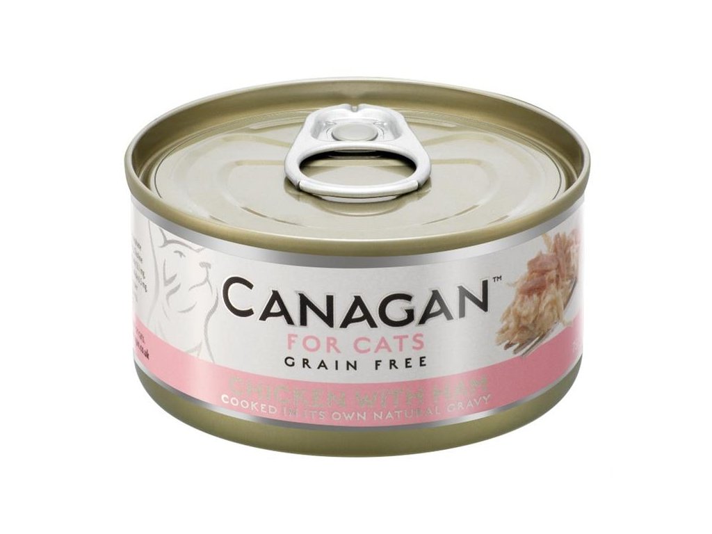 Canagan Cat Chicken with Ham – je kompletní krmivo pro kočky. Vyrobené je z čerstvého kuřecího masa bez kůže. Kuře doplňují lahodná sousta šunky – vše šetrně vařené ve vlastní šťávě pro zachování vysoké výživové hodnoty krmiva.