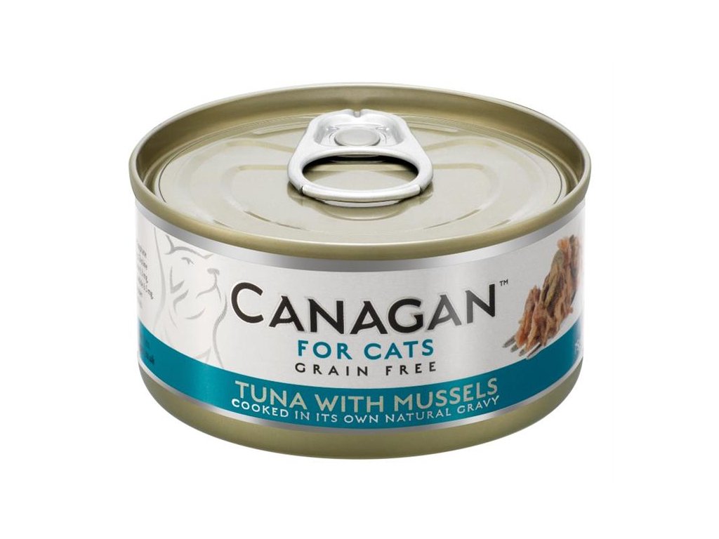 Canagan Cat Tuna with Mussels – je kompletní krmivo pro kočky. Vyrobené je z masa z tuňáků, kteří jsou volně lovení metodou šetrného odchytu na udici. Tuňáka doplňují lahodné slávky (mořské mlže) - vše je šetrně vařené ve vlastní šťávě pro zachování vysoké výživové hodnoty krmiva.