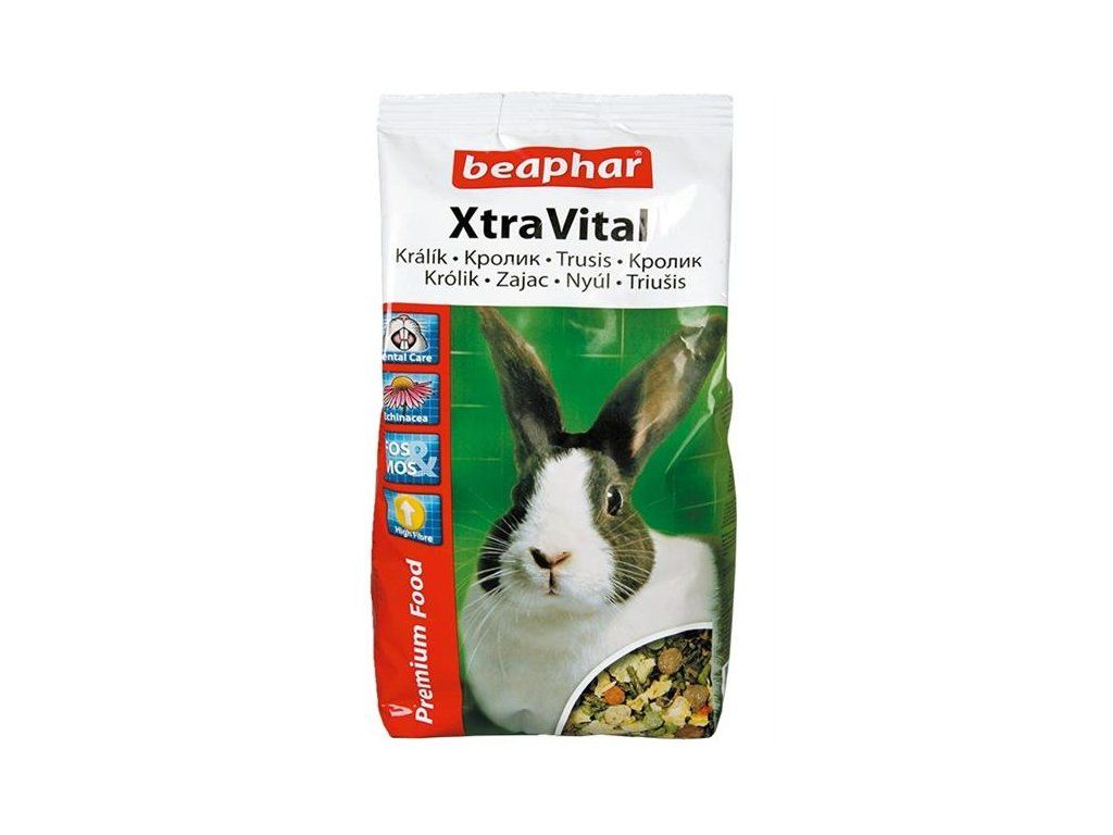 Kompletní krmivo pro králíky. Důležitý faktor správné výživy králíků - vysoký obsah vlákniny a nízký obsah tuků v krmivu! XtraVital krmivo pro králíky bylo vyvinuto experty na výživu ve spolupráci s veterináři. XtraVital krmivo je vyrobeno v Holandsku v závodech společnosti Beaphar. XtraVital je vysoce chutné a vyvážené krmivo prémiové kvality. Krmivo obsahuje všechny nezbytné vitamíny a minerály v chelátové formě (ve spojení s proteinem pro lepší využitelnost), je precizně sestaveno tak, aby pokrylo všechny nutriční potřeby králíků. XtraVital je plný proteinů a vlákniny pro optimální stimulaci zažívání. XtraVital má nízký obsah tuků pro prevenci tukových usazenin na vnitřních orgánech. Dental Care – systém péče o zuby. Zuby jsou zdravější a silnější. Obohaceno o extrakt z Echinacea - homeopatický prostředek k posílení imunitního systému a zvýšení tělesné odolnosti proti nemocem. Přídavek FOS a MOS pro podporu zdravého zažívání. Díky XtraVital bude mít Váš králík dlouhý a zdravý život, krásnou pokožku a srst!