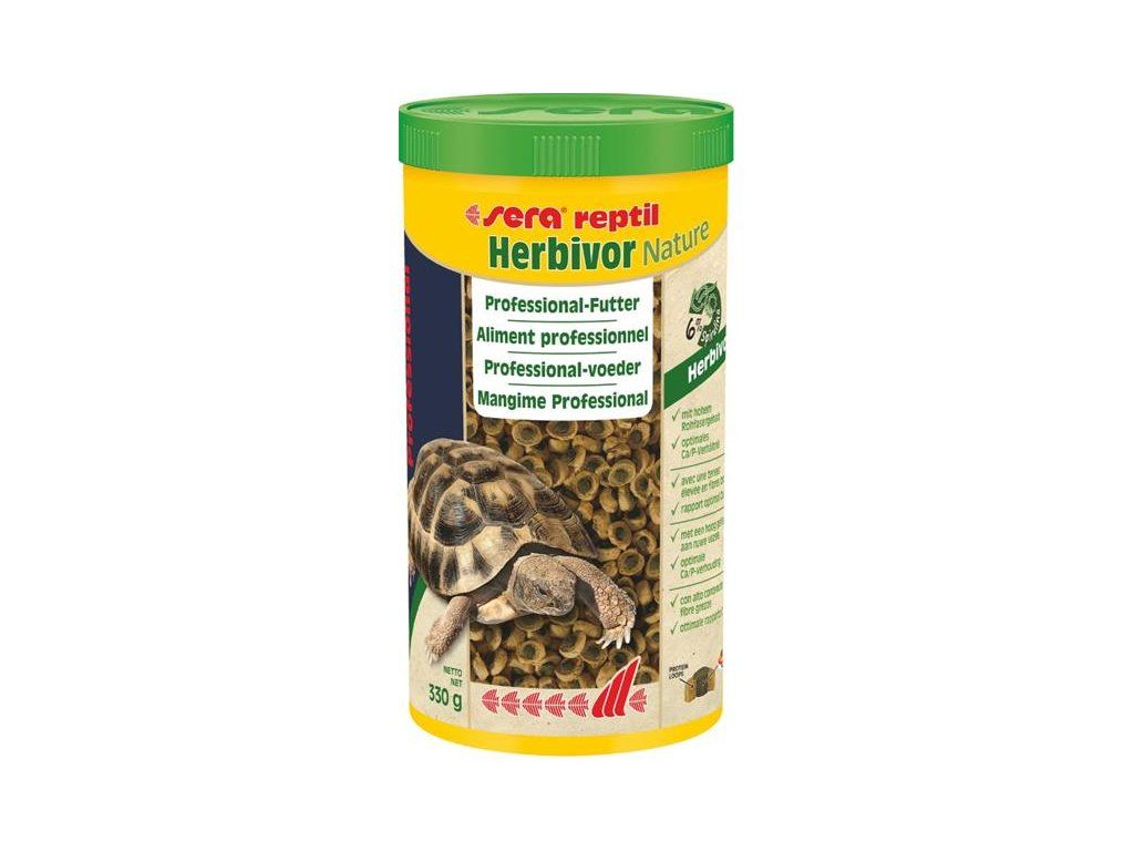 Sera reptil Professional Herbivor Nature je doplňkové krmivo bez barviv a konzervačních látek z plovoucích dvoubarevných granulí vyráběných vysoce funkčním procesem koextruze pro všechny býložravé plazy jako suchozemské želvy a leguáni.