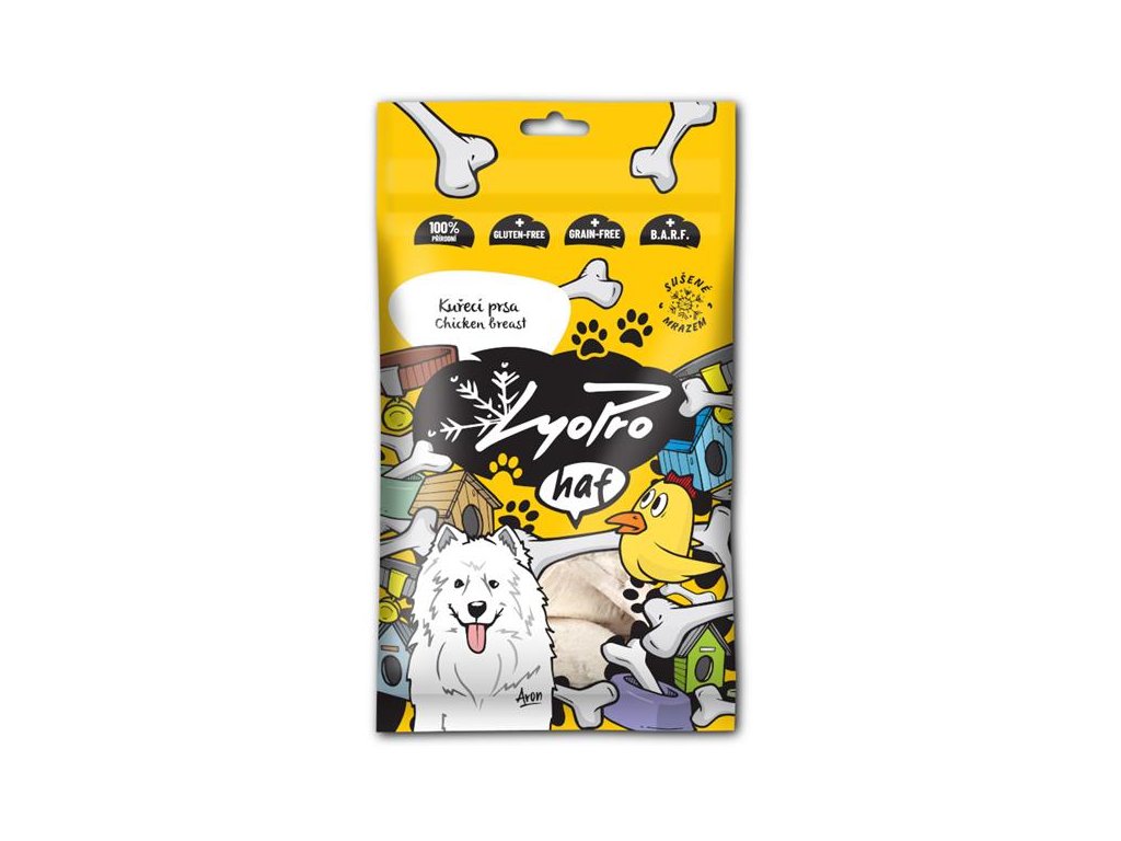 Voňavá kuřecí prsa si díky šetrnému sušení mrazem (lyofilizaci) zachovávají své aroma, strukturu i plnou chuť, kterou psi milují. Při lyofilizaci neprochází maso vysokými teplotami, a proto si uchová maximum vitamínů, minerálů a nutričně hodnotných látek. Jde o ideální volbu pro BARF (krmení syrovou stravou), psí alergiky a celiaky. Další výhodou sušení mrazem je dlouhá trvanlivost. Pamlsky se vyrábějí z poctivých kousků čerstvých kuřecích prsou bez přidané chemie, obilnin, konzervantů a jiných balastních látek. Jde tak o zdravou, lehkou a výživnou odměnu.
