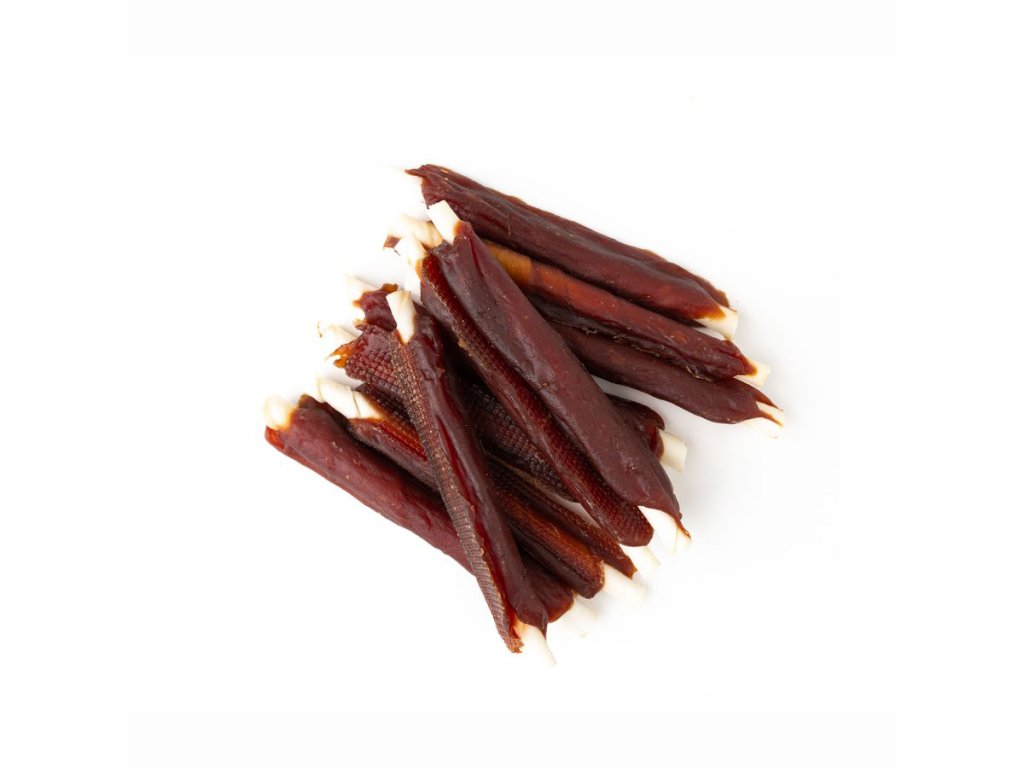 - Tyčka z hovězí kůže obtočená plátkem lahodného kachního masa.