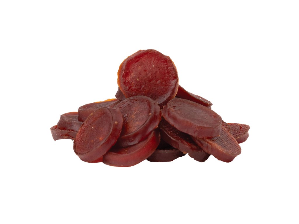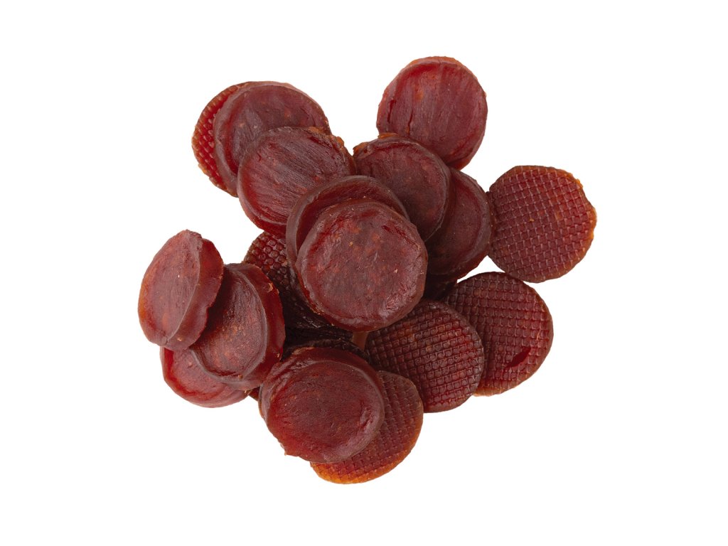 Měkká, přírodní masová pochoutka z kachní svaloviny formovaná do malých dukátků - chipsů.