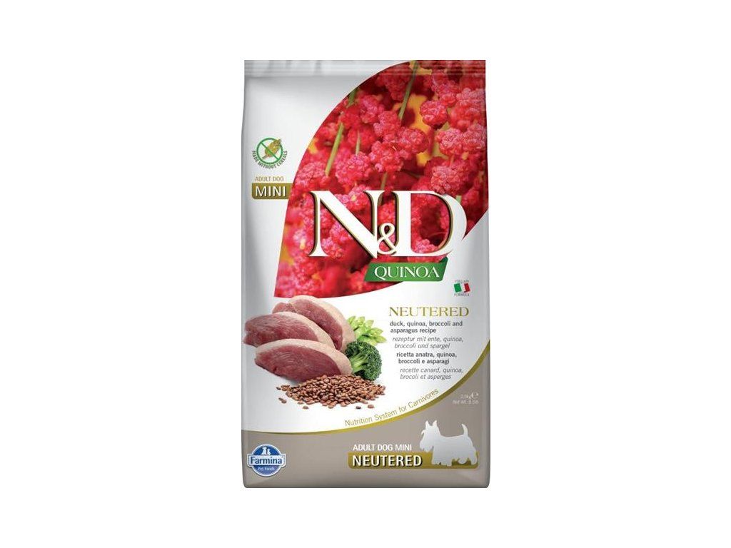 N&D QUINOA Dog GF Duck, Broccoli & Asparagus Neutered Adult Mini 2,5 kg