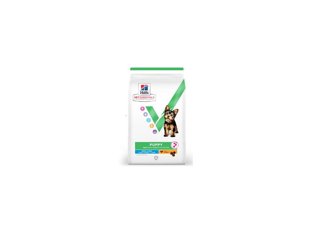 Hill's VET ESSENTIALS MULTI-BENEFIT krmivo s kuřetem pro štěňata malých plemen je kompletní, všestranně prospěšná výživa pro štěňata vážící v dospělosti 10 kg, a to ve věku od 4 týdnů do 12 měsíců, a také pro březí nebo kojící feny. Poskytuje přesné nutričně vyvážené množství energie, bílkovin, vitaminů a minerálů a jedinečnou směs prebiotik.