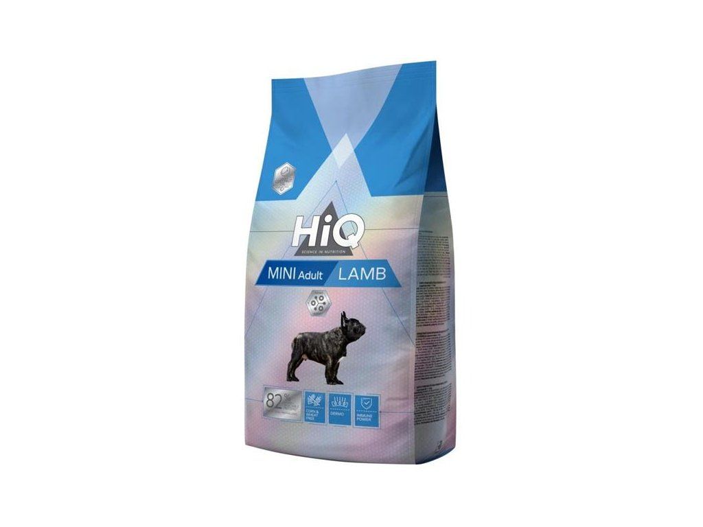 Kompletní krmivo HiQ Adult Mini Lamb pro dospělé psy malých plemen o hmotnosti 1–10 kg obsahuje bílkoviny z jehněčího masa, které vyhovují potřebám organismu a udržují energetickou rovnováhu. Neobsahuje pšenici ani kukuřici, proto je vhodný i pro psy s citlivým zažíváním. Granule podporují trávení a vstřebávání živin a udržení optimální hmotnosti psa. Komponenty krmiva podporují zdraví pokožky a napomáhají k lesklé a husté srsti.