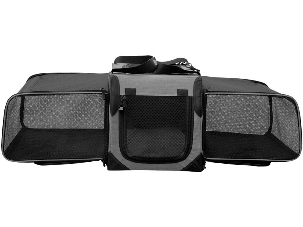 Multifunkční skládací nylonový box / kenelka Nobby EXTEND pro psy do max. 25 kg. Perfektní doplněk na cesty, do auta i domu.Konstrukce tašky je velmi stabilní díky pevnému kovovému rámu, který je možné složit. Rozkládací boční panely vyrobené ze síťoviny přemění tašku na stabilní box s větším objemem.