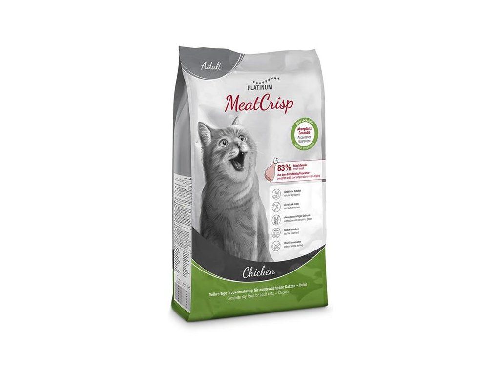 Kompletní suché krmivo Platinum MeatCrisp pro kočky obsahuje 83 % čerstvého kuřecího masa připravovaného unikátní metodou Freshmeatdryer, při níž se do sušičky, kde při nízké teplotě cirkuluje vzduch, vloží čerstvé maso s dalšími přísadami. Pomalé a rovnoměrné sušení zachovává přirozenou chuť masa i důležité živiny. Proto jsou granule MeatCrisp zdravé, křupavé, plné chuti a neodolá jim ani ten nejmlsnější kočičí jazýček.