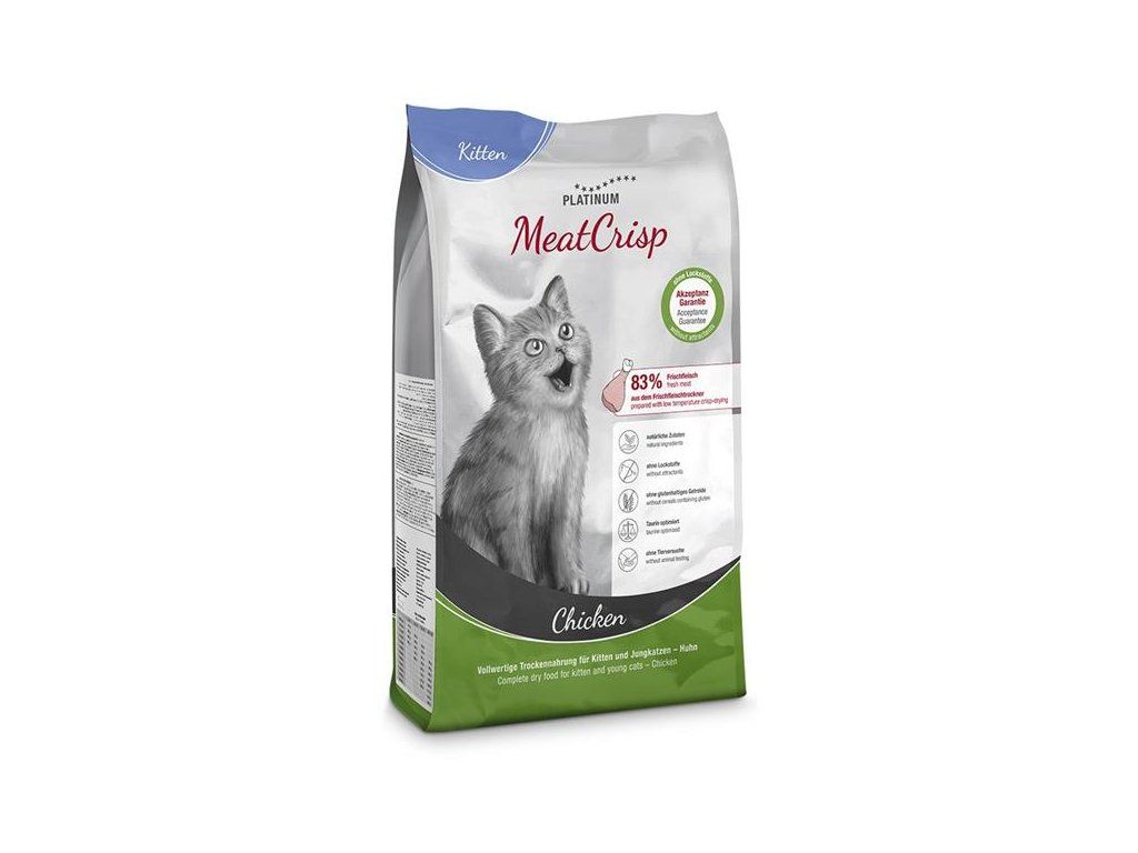 Kompletní suché krmivo Platinum MeatCrisp pro koťata a dospívající kočky obsahuje 83 % čerstvého kuřecího masa připravovaného unikátní metodou Freshmeatdryer, při níž se do sušičky, kde při nízké teplotě cirkuluje vzduch, vloží čerstvé maso s dalšími přísadami. Pomalé a rovnoměrné sušení zachovává přirozenou chuť masa i důležité živiny. Proto jsou granule MeatCrisp zdravé, křupavé, plné chuti a neodolá jim ani ten nejmlsnější kočičí jazýček.
