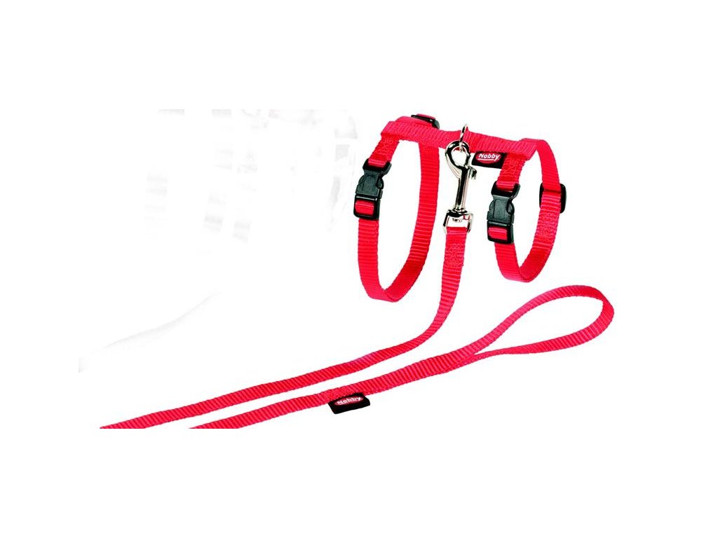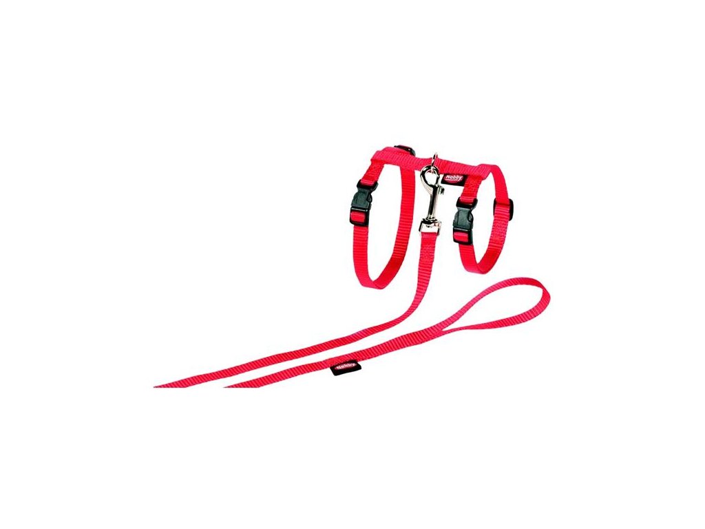 Červený postroj pro kočky s vodítkem z nylonu ve velikosti XL.