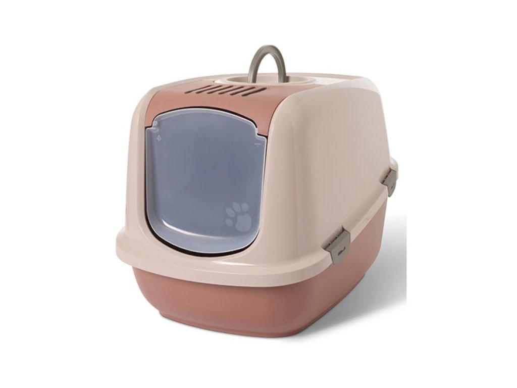 Krytá toaleta SAVIC Nestor Jumbo je díky svým rozměrům a vyvýšenému okraji v zadní části vhodná i pro velké kočky a kočky, které vykonávají potřebu vestoje. Dvoubarevný kryt s výklopným úchytem pro přenášení se ke spodní nádobě připevňuje pomocí klipsů. Přední část krytu s širokými dvířky lze vyklopit, abyste při běžném vybíraní nečistot nemuseli pokaždé snímat víko. Ve stropě krytu je umístěn filtr s aktivním uhlím, který zabraňuje unikání zápachu z WC. Toaleta Nestor se výborně hodí i pro navykání bojácných koček či koťat na používání krytého záchodu – kryt jim můžete nechat zpočátku vyklopený.