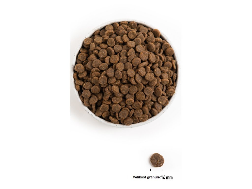 ANALYTICKÉ SLOŽKY: Hrubý protein 31 %, Obsah tuku 15 %, Hrubý popel 7,5 %, Hrubá vláknina 5 %, Vlhkost 12 %, Vápník 1,5 %, Fosfor 1,1 %, Omega-6 1,8 %, Omega-3 0,9 %, DHA / EPA 0,15 % / 0,1 %.