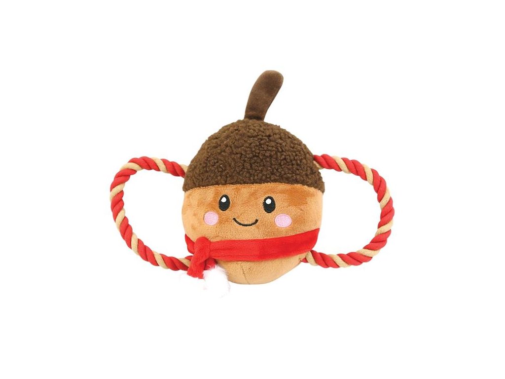 Roztomilá vánoční hračka pro psy – žaludový skřítek z hebkého plyše s provazovými úchyty – poslouží jak k aportování a mírnému přetahování, tak k mazlení ve chvílích odpočinku.