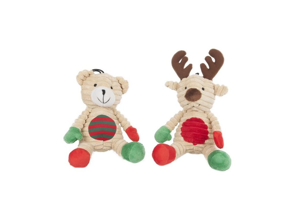 Vánoční hračka pro psy ve tvaru losa nebo medvěda je vyrobena z plyše s manšestrovou úpravou. Pro větší zábavu hračka šustí a obsahuje pískátko.