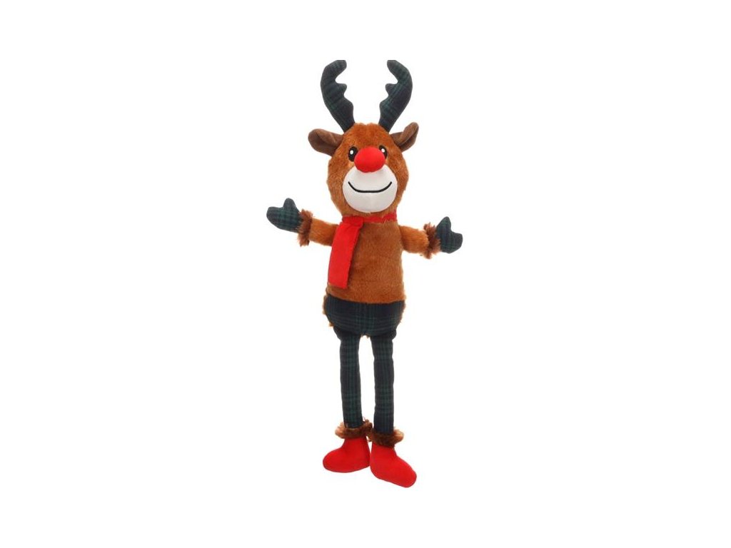 Vánoční hračka pro psy ve tvaru soba s šálou kolem krku je vyrobena z hebkého plyše. Pro větší potěšení ze hry obsahuje sob pískátko.