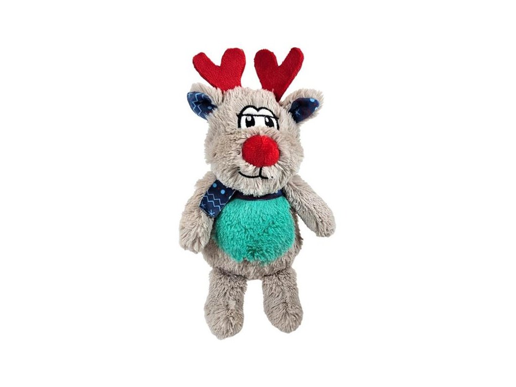 Vánoční hračka pro psy má podobu baculatého soba se zimní šálou. Sob je vyrobený z hebkého plyše a pro větší potěšení ze hry obsahuje pískátko.