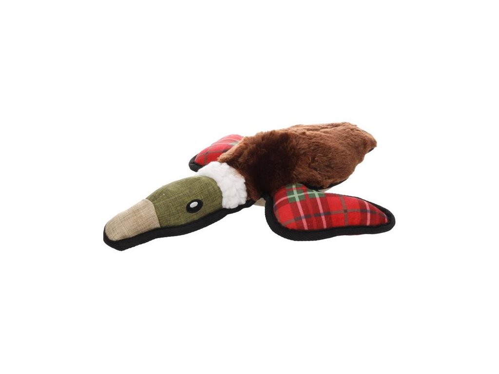 Vánoční hračka pro psy ve tvaru kachny je vyrobena z plátěné tkaniny a hebkého plyše. Pro větší potěšení ze hry obsahuje kachna pískátko.