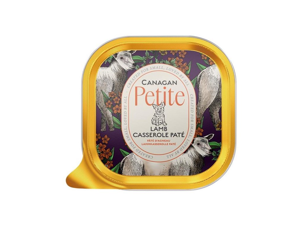 Paštika Canagan Petite vyrobená z těch nejlepších ingrediencí poskytne vašemu psímu mazlíčkovi lahodné a vyvážené krmení nebo skvěle poslouží jako topper k ochucení granulí. Stejně jako v ostatních výrobcích značky Canagan, ani v těchto vaničkách nenajdete žádné obiloviny. Jehněčí je v nich doplněné zeleninou a ovocem (mrkev, hrášek a jablka v bio kvalitě), bylinkami a kloubní výživou pro podporu pohyblivosti.
