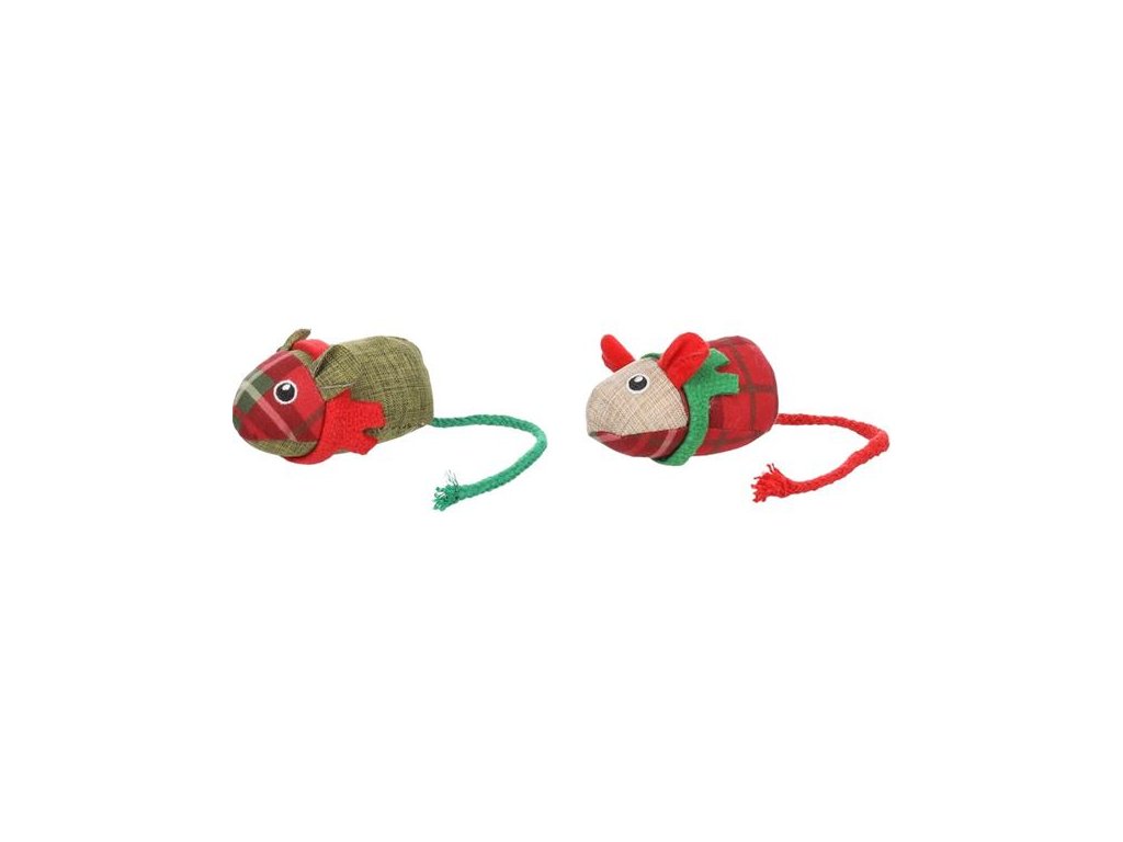 Vánoční hračky pro kočky ve tvaru myší jsou vyrobené z různých druhů látek (plátno, plyš atd.). Uvnitř hraček je catnip (šanta kočičí), jehož vůně povzbuzuje ke hře až 70 % koček. Pro ještě větší potěšení ze hry mají myši dlouhý ocásek z provázku.