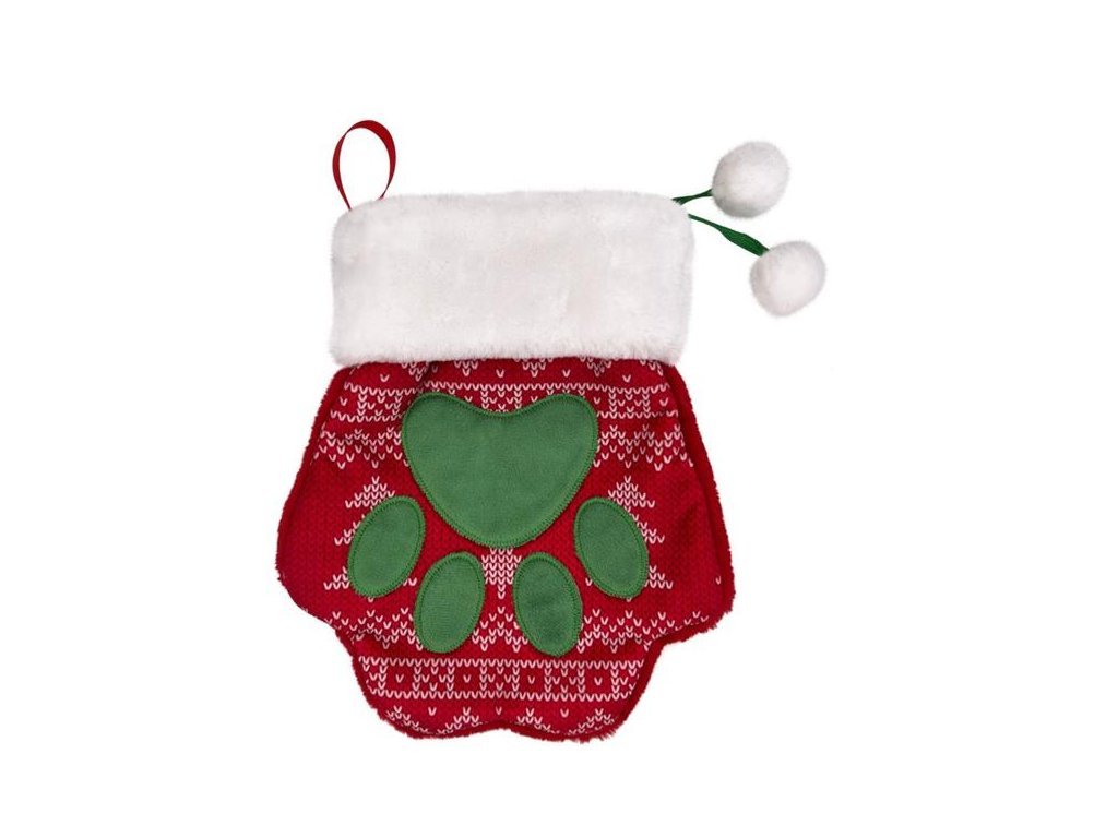 Plyšový pytlík ve tvaru tlapy s poutkem k zavěšení je ideální skrýší na vánoční pamlsky nebo drobnější hračky pro psy i kočky nejen na Štědrý den.