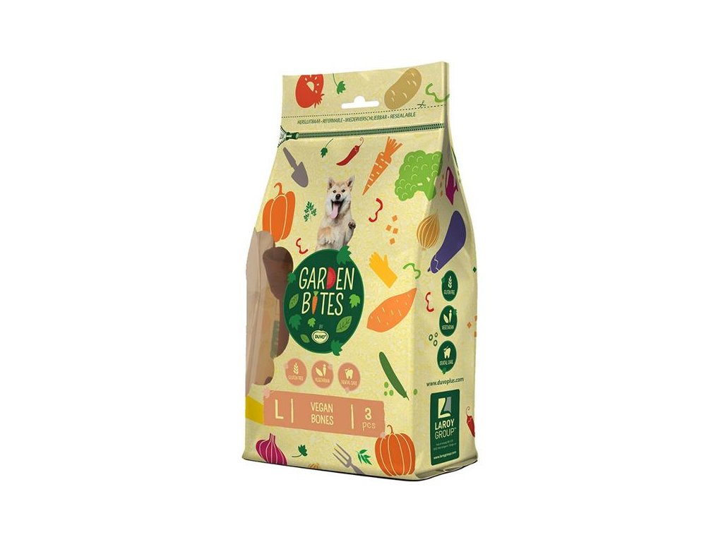 Vegetariánská pochoutka Garden Bites je ideální odměnou pro Vašeho psa. Výborný pamlsek pro psy trpící na alergie, protože tato pochoutka je 100% bez lepku a lehce stravitelná. Díky speciálním tvarům napomáhá pamlsek při čištění a masírování zubů. Přírodní extrakt oleje z máty pak zajišťuje čerstvý dech. Garden Bites obsahuje nejméně 55% sladkých brambor, které jsou skvělým doplňkem stravy Vašeho psa. Sladké brambory jsou bohaté na vápník a železo.