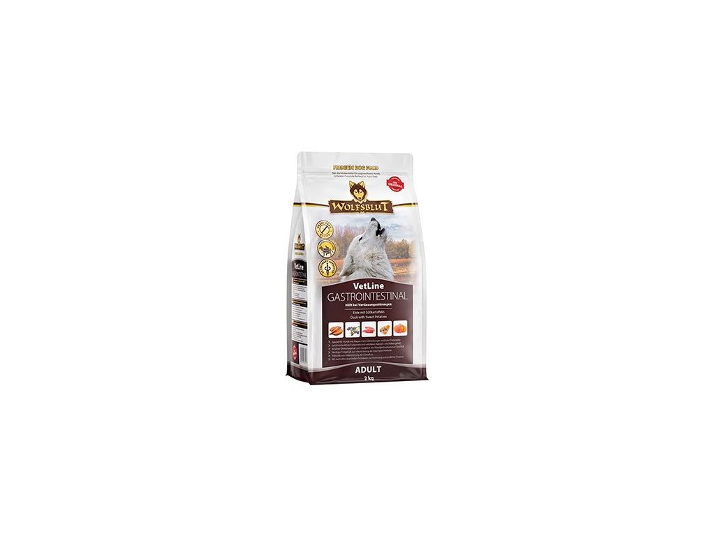 WOLFSBLUT VetLine GASTROINTESTINAL je kompletní dietní krmivo pro dospělé psy ke zmírnění poruch vstřebávání střev a ke kompenzaci nedostatečného trávení a chronické pankreatické nedostatečnosti.